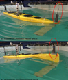 Terao (1982) in Japan conducted a simplified free running experimental study with a surface boat and submerged flapping foils in waves, which under certain conditions achieved self-propulsion.
